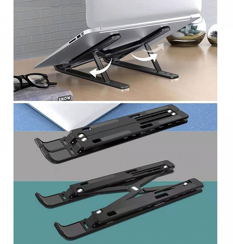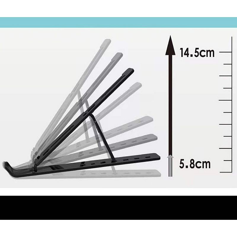 Stand Holder untuk laptop ini juga dapat dilipat menjadi bentuk yang lebih kecil sehingga memudahkan stand laptop ini untuk dimasukkan ke dalam tas.