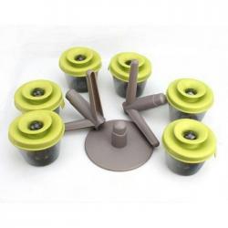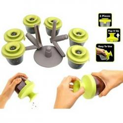Pop Spice Up Spice Rack merupakan tempat penyimpan bumbu-bumbu masakan yang hadir dengan bentuk yang unik seperti pohon. Anda dapat dengan mudah menaruh dan mengambil kotak penyimpanan dengan menaruhnya di tangkai plastik yang menyerupai pohon. Sistem Penutup kotak menggunakan sistem pop-up sehingga Anda dapat menuang isi kotak tanpa perlu membuka penutup kotak.